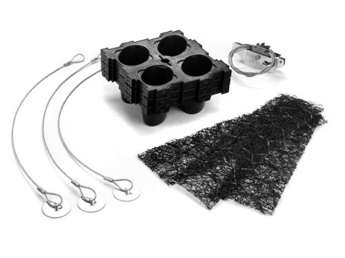 Plain plastic strap offers some stretch capability and strength. Normally used with hoop collar or rubber block between stake and tree. Held to stake with two galvanised nails.